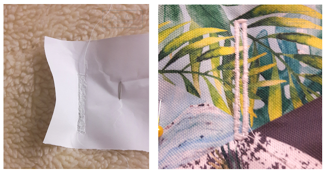 Po kilku cichych dniach i paru podejściach do szycia na raz 6 warstw materiału bez regulacji docisku stopki jakoś przebrnęłyśmy przez wszycie tuneli. Kolejnym nie małym wyzwaniem okazało się obszycie otworów na pasy - w tym przypadku zadziałał stary, dobry sposób babci, czyli szycie przez papier!
